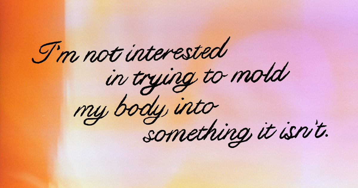 I’m not interested in trying to mold my body into something it isn’t. I don’t want to spend my time trying to disguise my body, hiding the pieces I’ve deemed as less than. I have no desire to make my body more palatable, for myself or others. My body is not something to accept or reject, to love or to hate. Maybe it’s greedy and, like most things, it’s easier to say than it is to come by, but I want more than that. No, I don’t want to settle for simply loving my body. I want to be my body.
